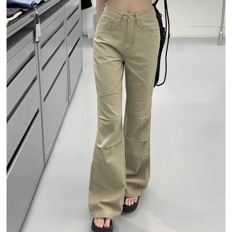 Woman High Waist Fashion Loose Flare Jeans Female American Casual Bell Bottom Pants Girls Designer Khaki Denim Cargo Trousers