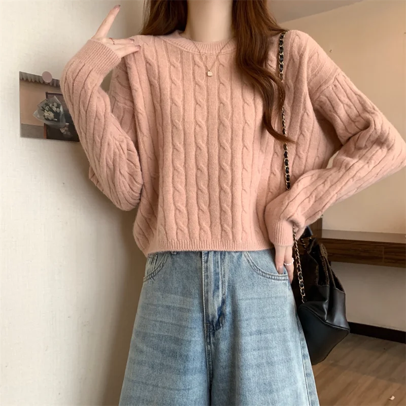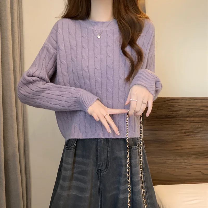 Round Neck Long-sleeved Pullover Sweater for Women in Autumn Winter Short Style Knitted Base Shirt to Make Them Look Slim Top