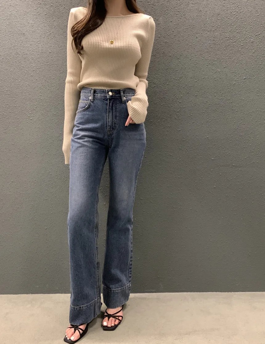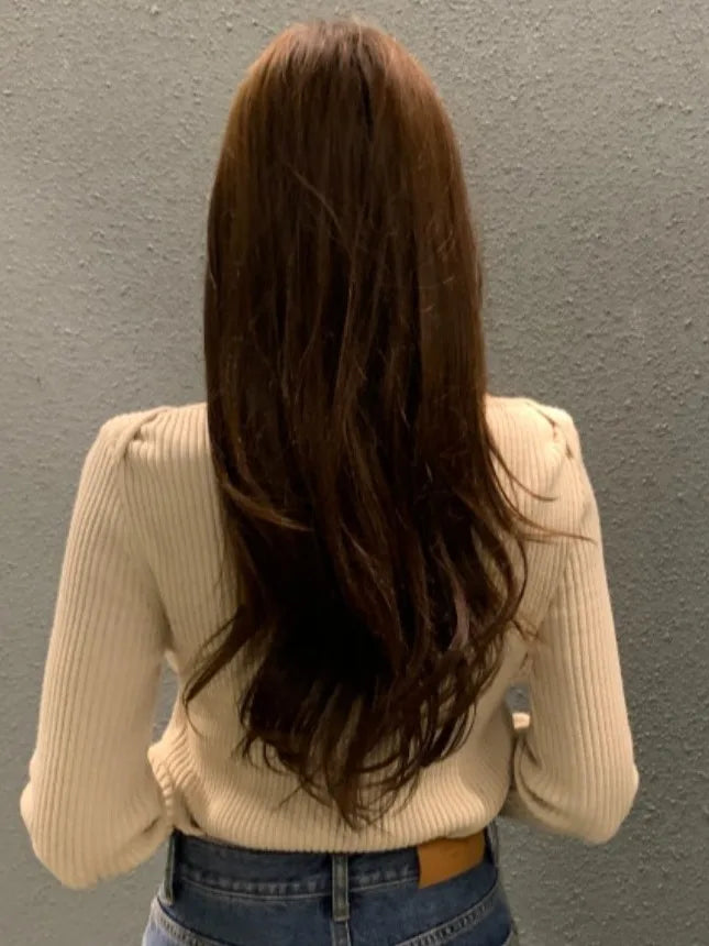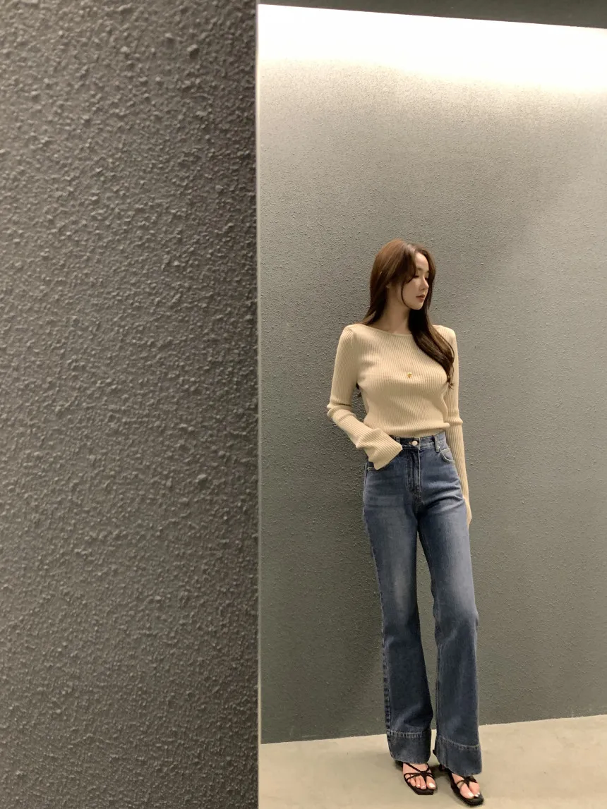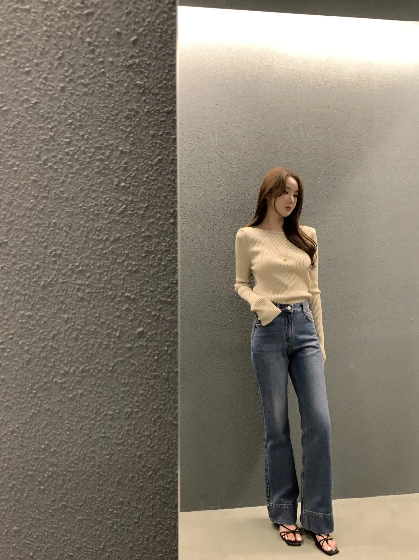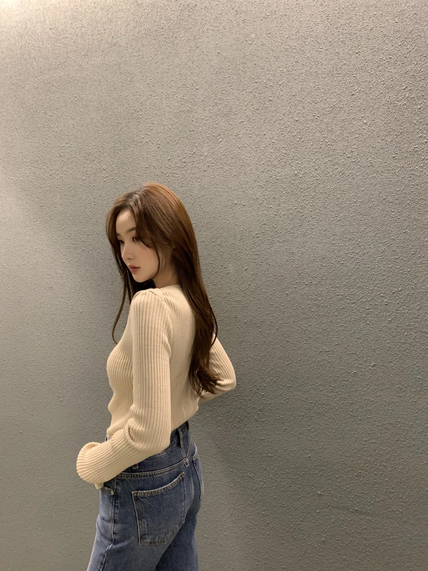 Embrace the latest Korean fashion trend with this chic, minimalist one-shoulder knit sweater, perfect for autumn.