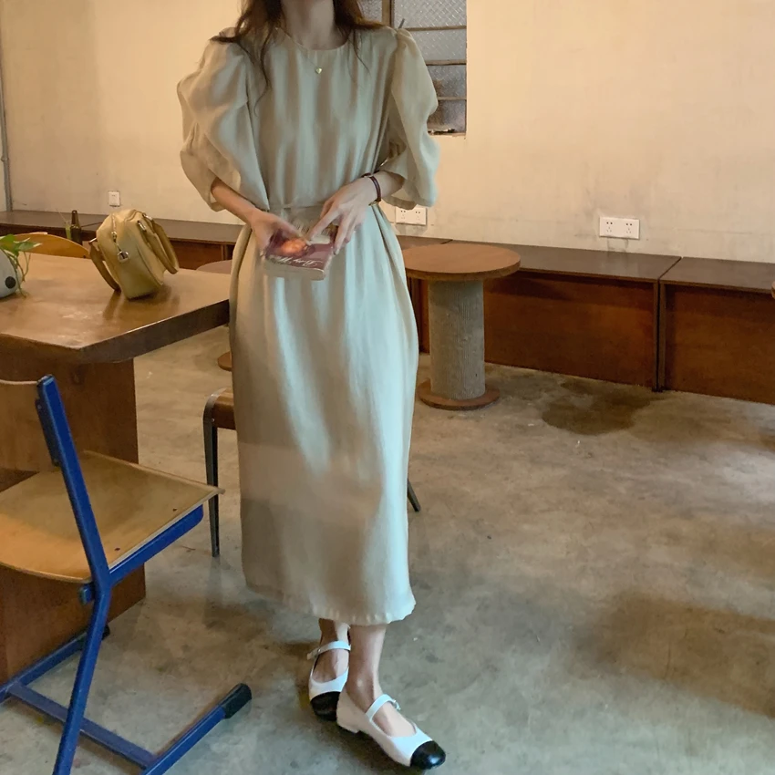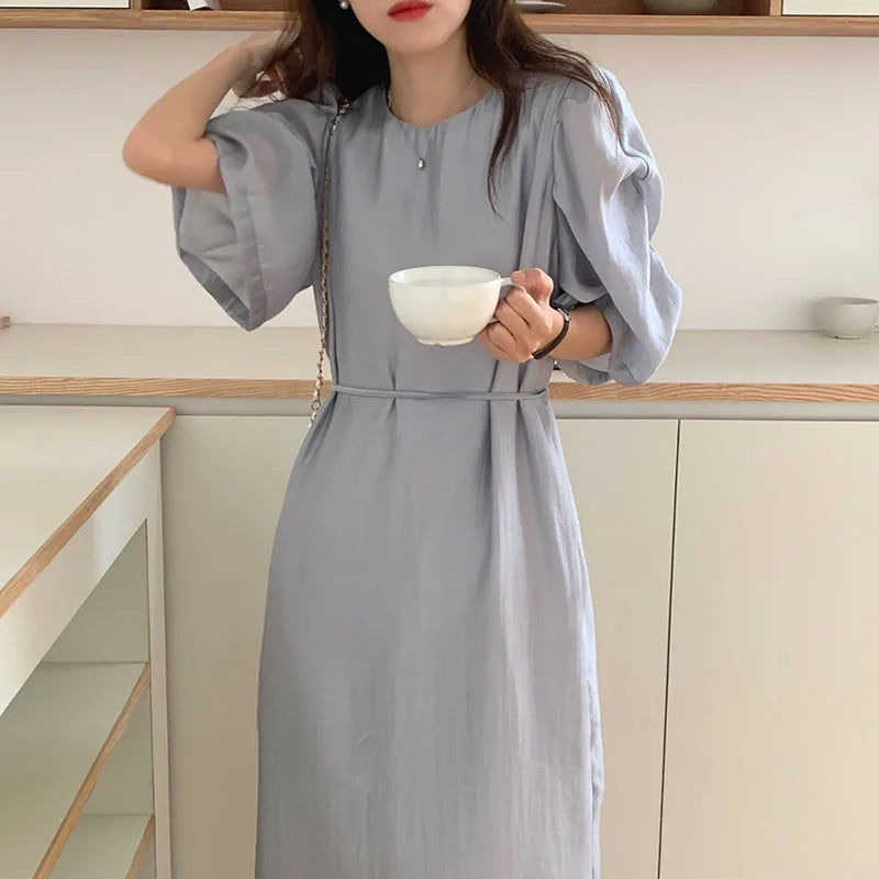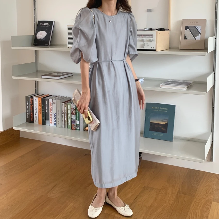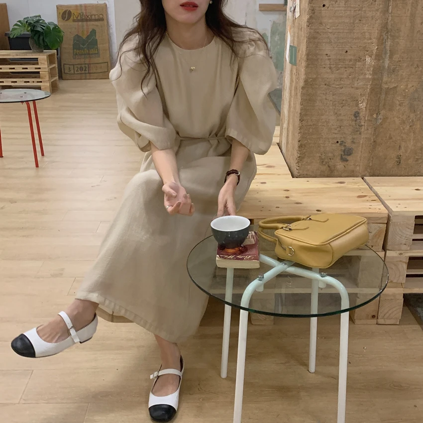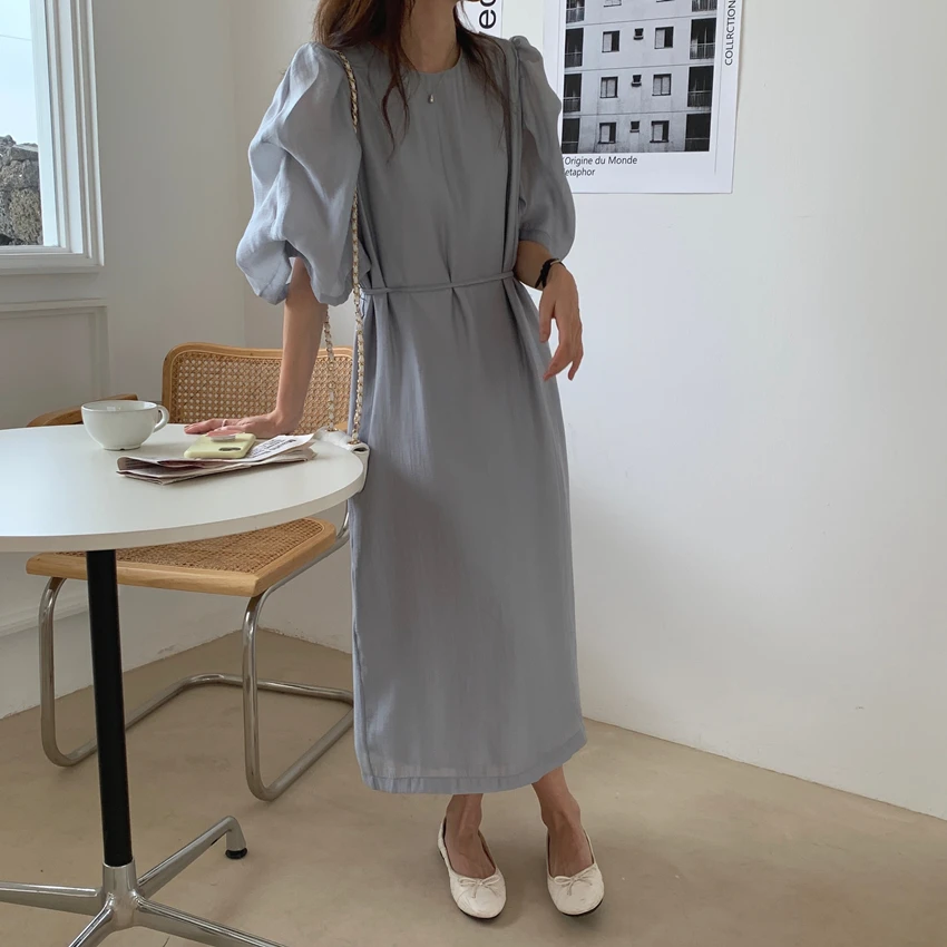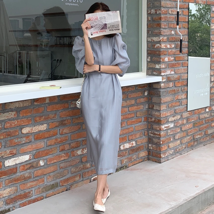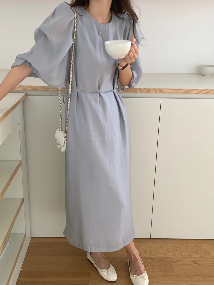 Embrace the chic Korean style with this elegant long dress, perfect for commuting or casual outings.
