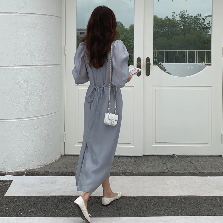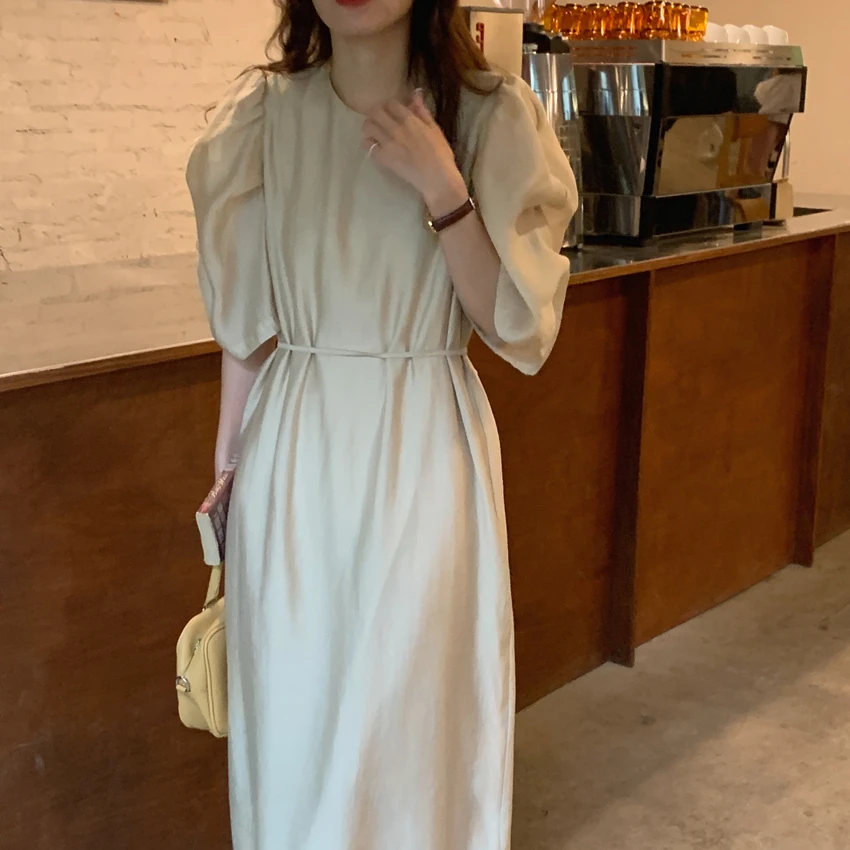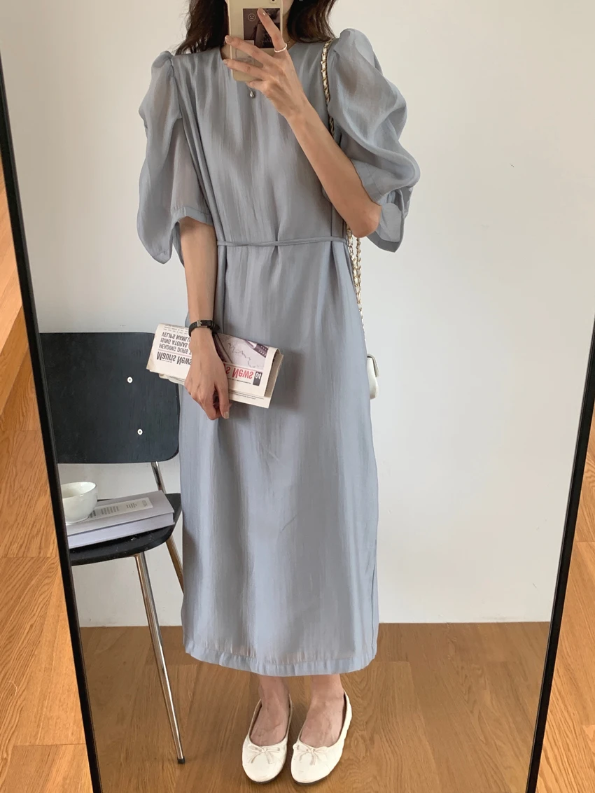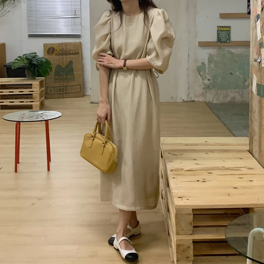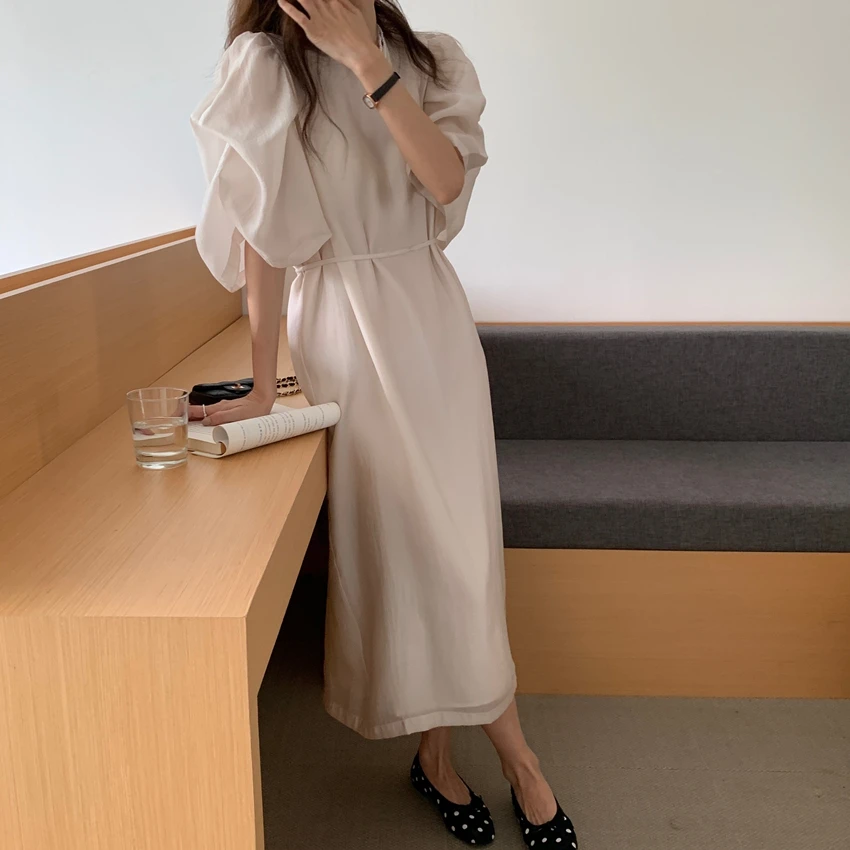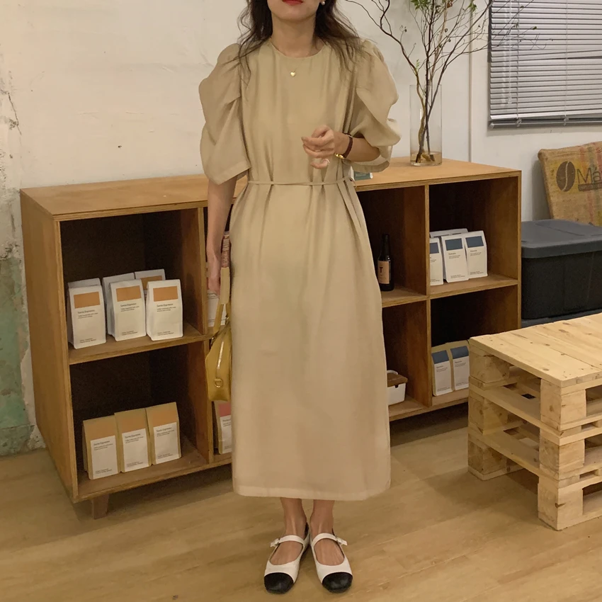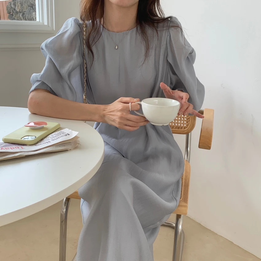 Embrace the chic Korean style with this elegant long dress, perfect for commuting or casual outings.