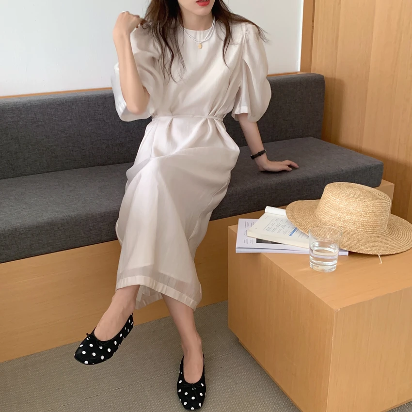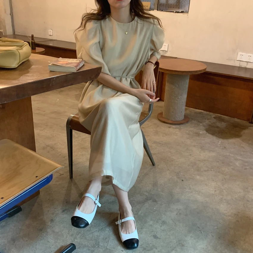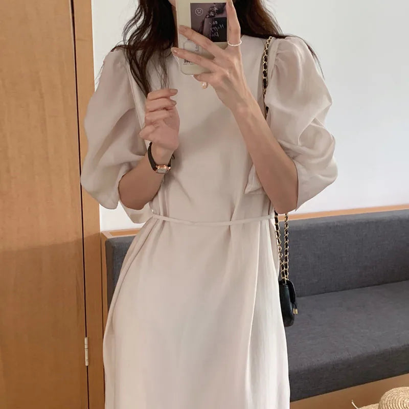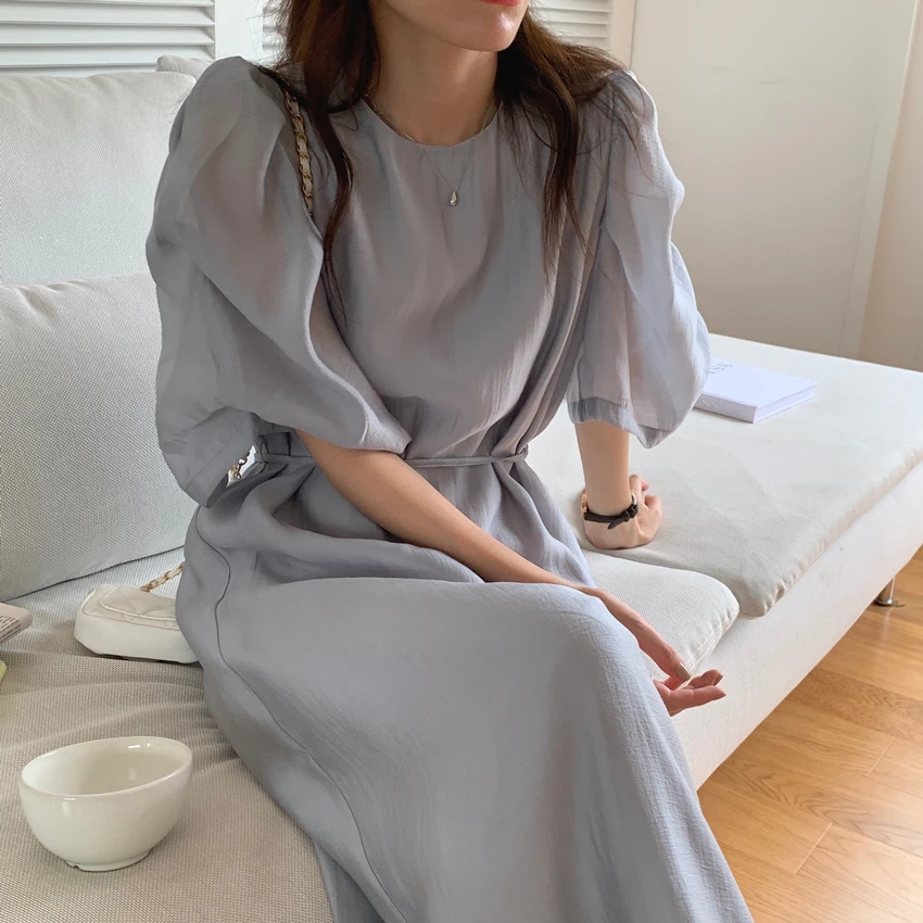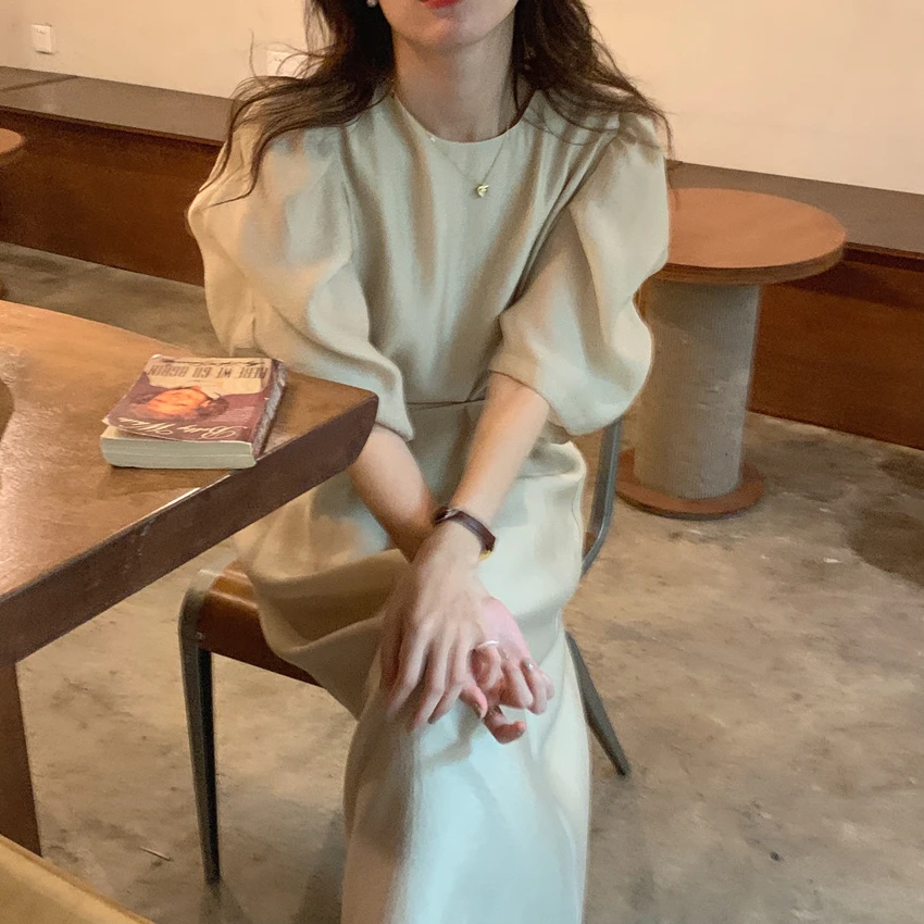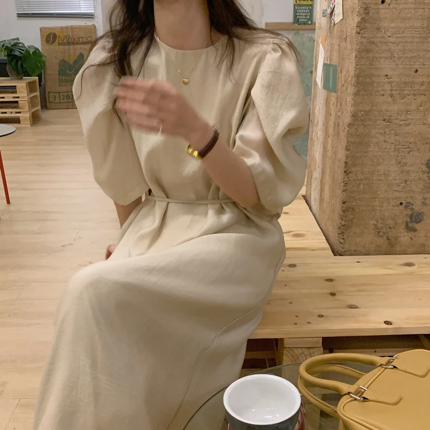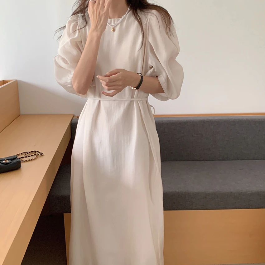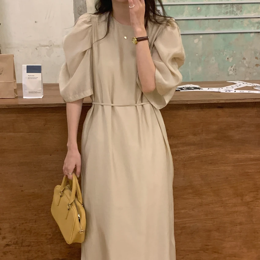 Embrace the chic Korean style with this elegant long dress, perfect for commuting or casual outings.