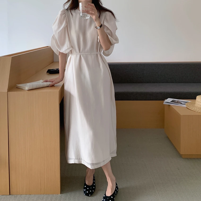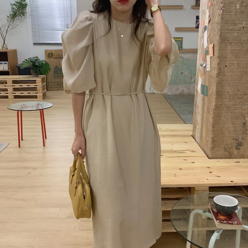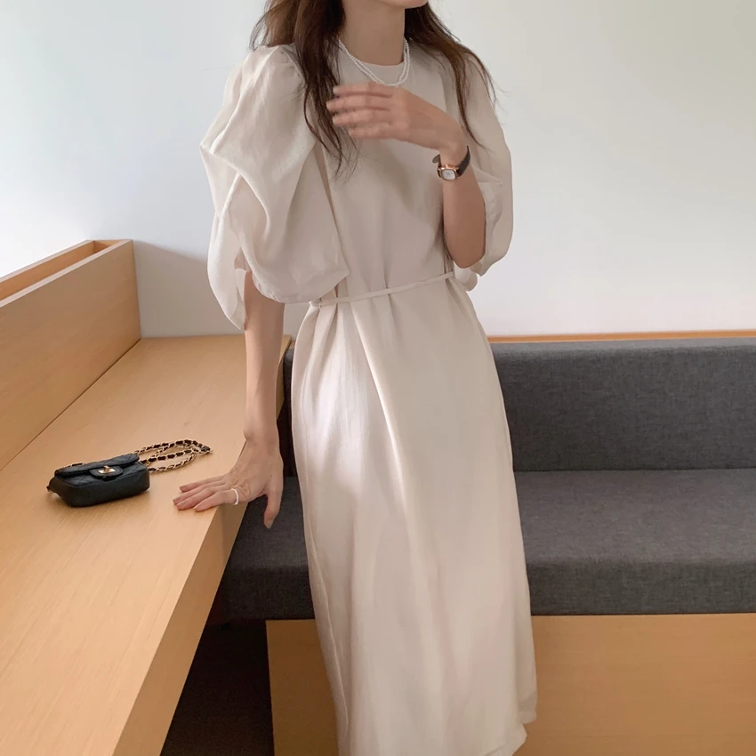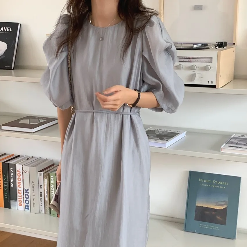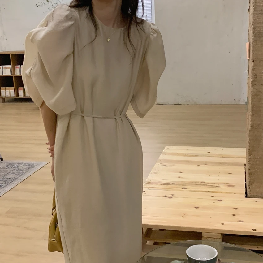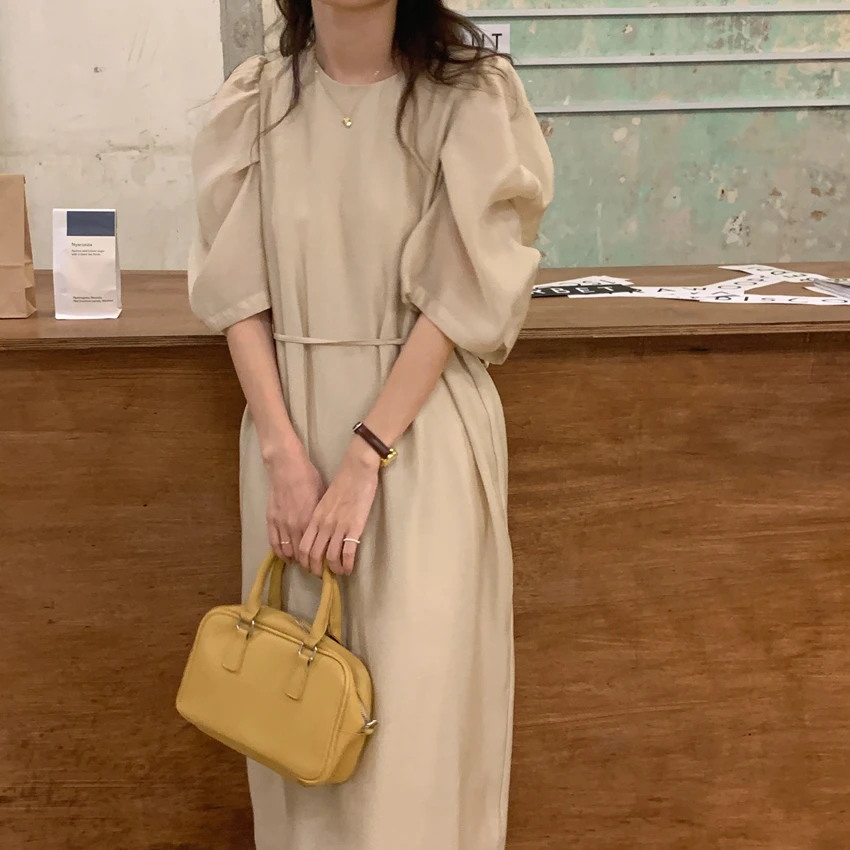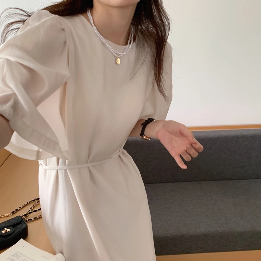 Embrace the chic Korean style with this elegant long dress, perfect for commuting or casual outings.