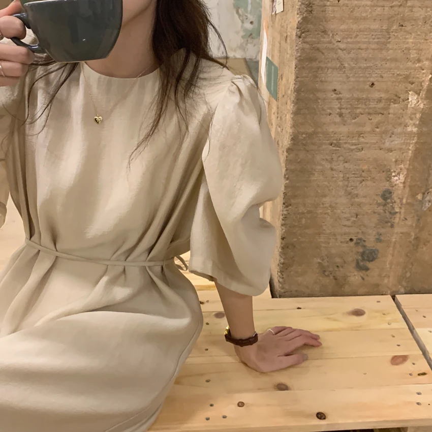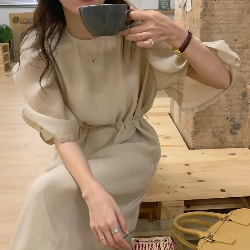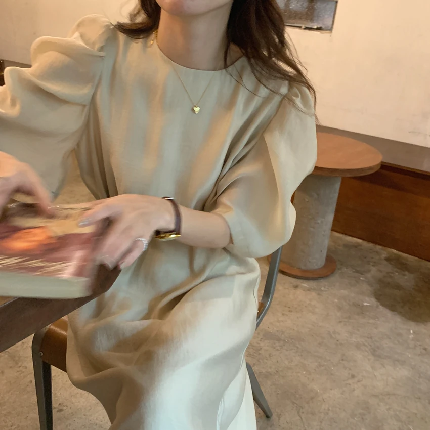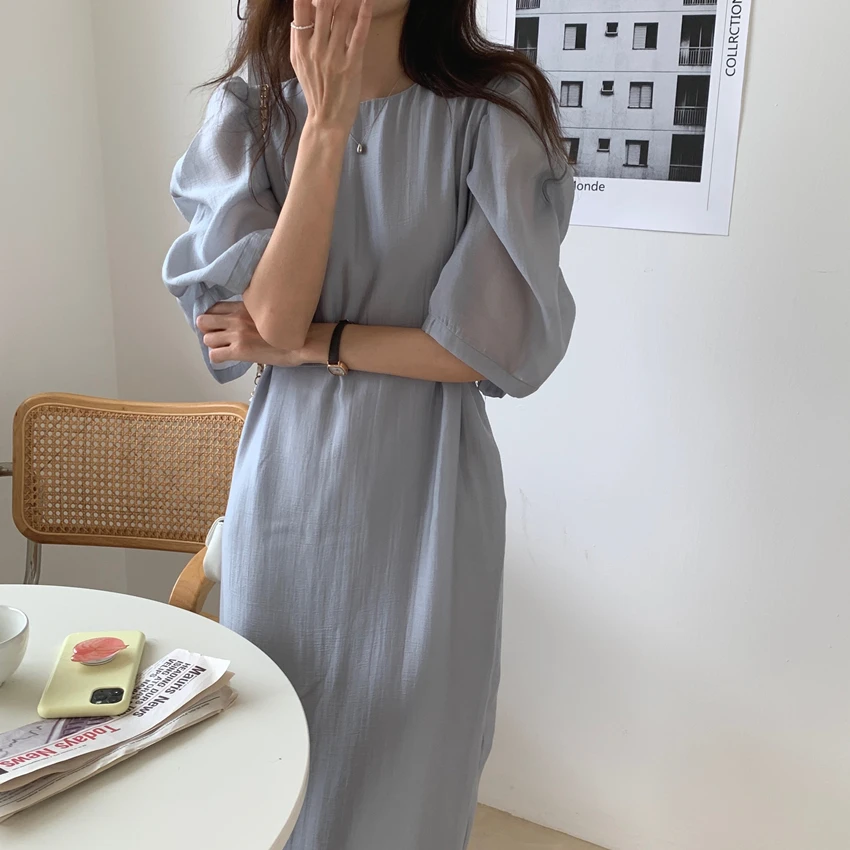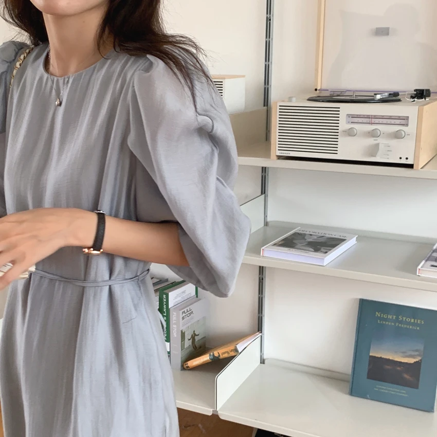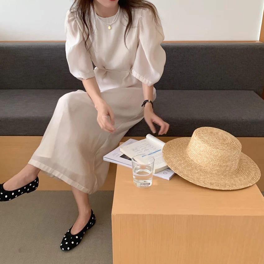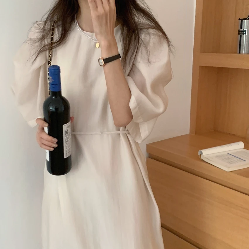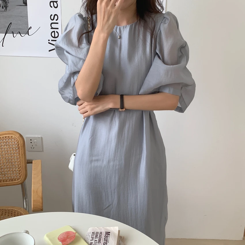 Embrace the chic Korean style with this elegant long dress, perfect for commuting or casual outings.