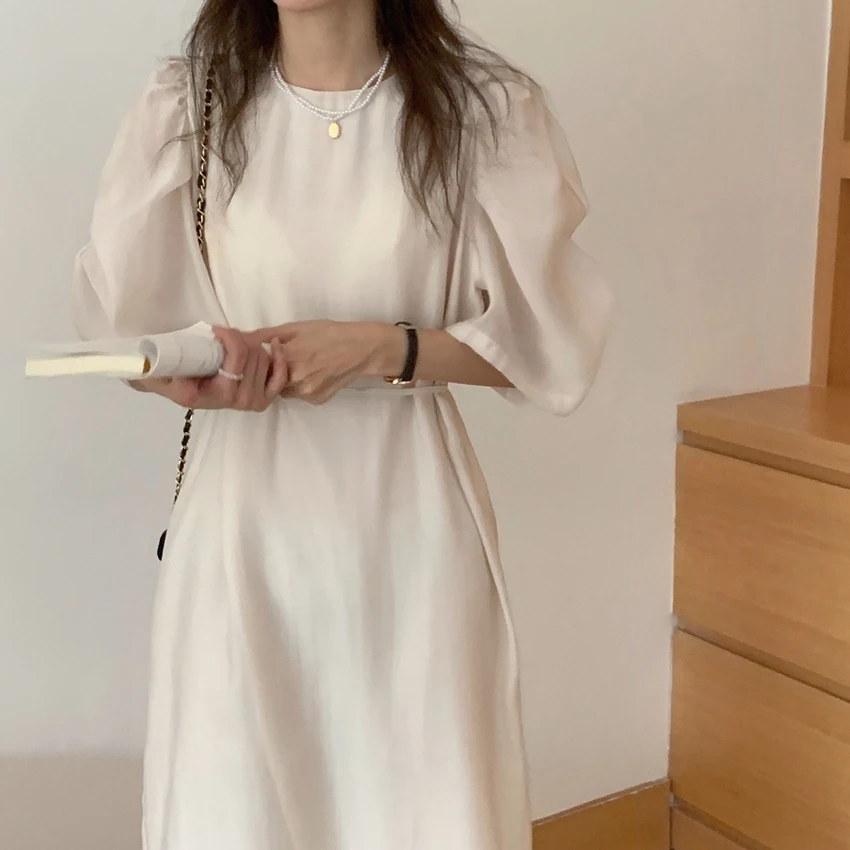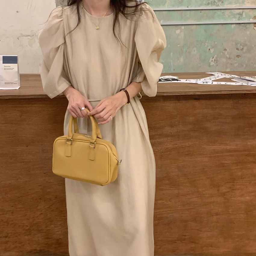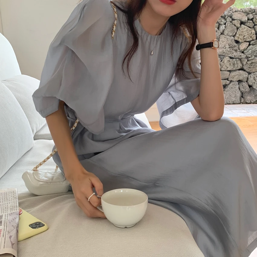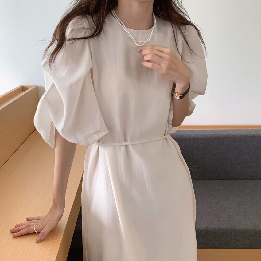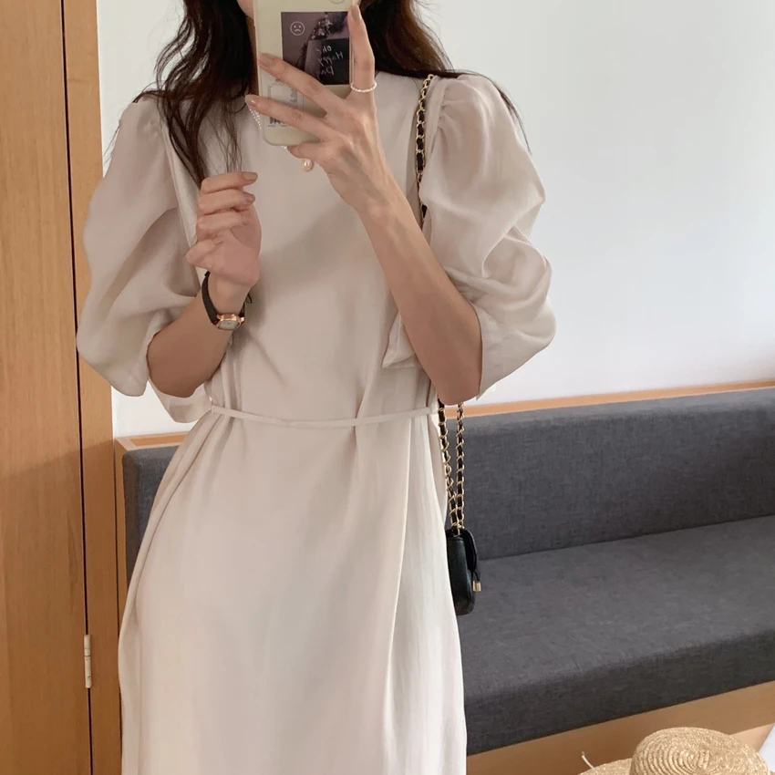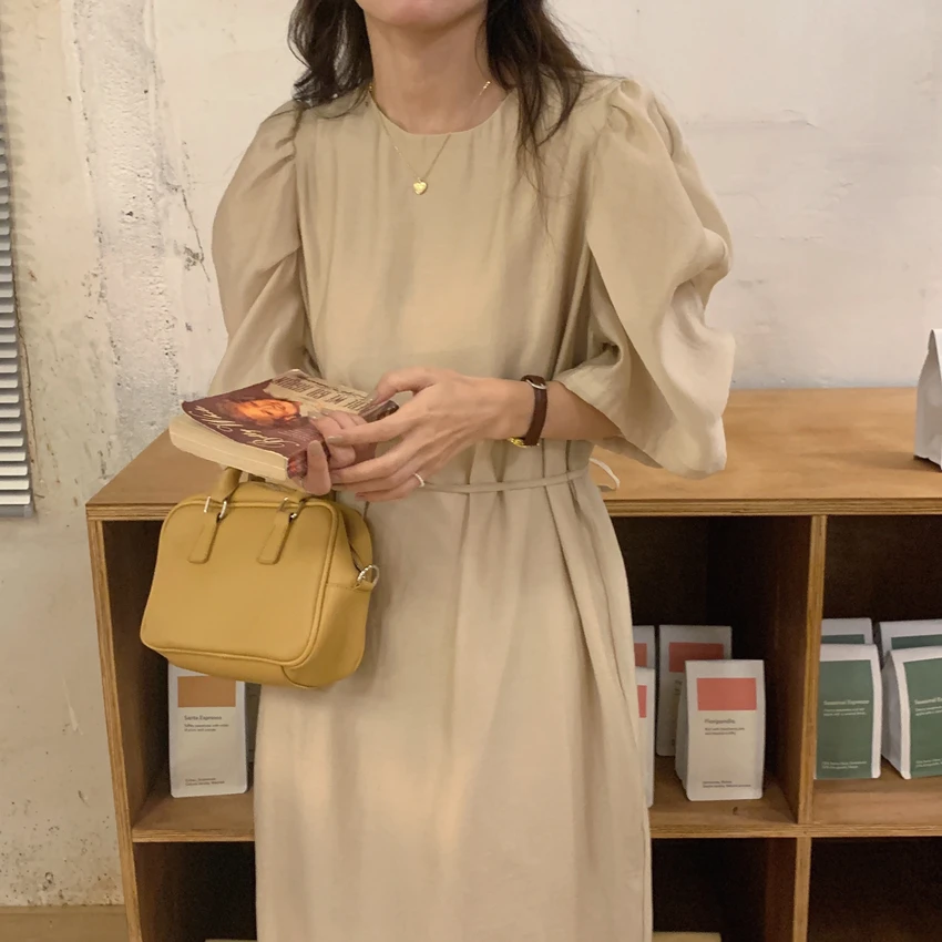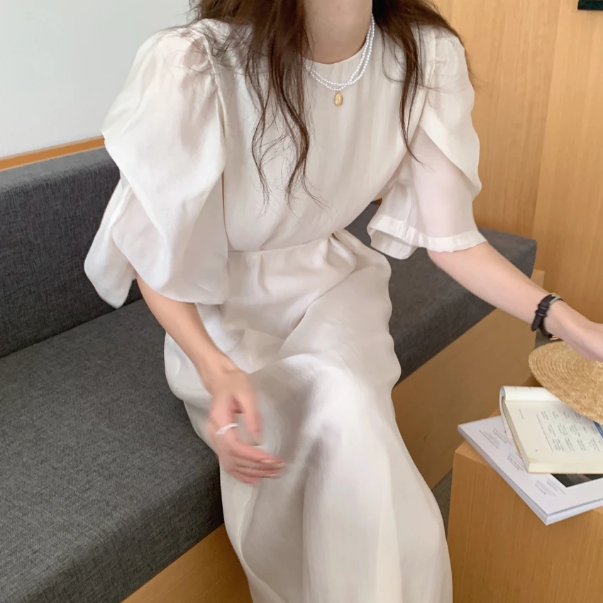Embrace the chic Korean style with this elegant long dress, perfect for commuting or casual outings.