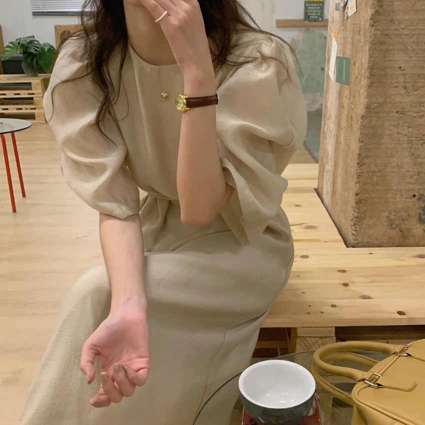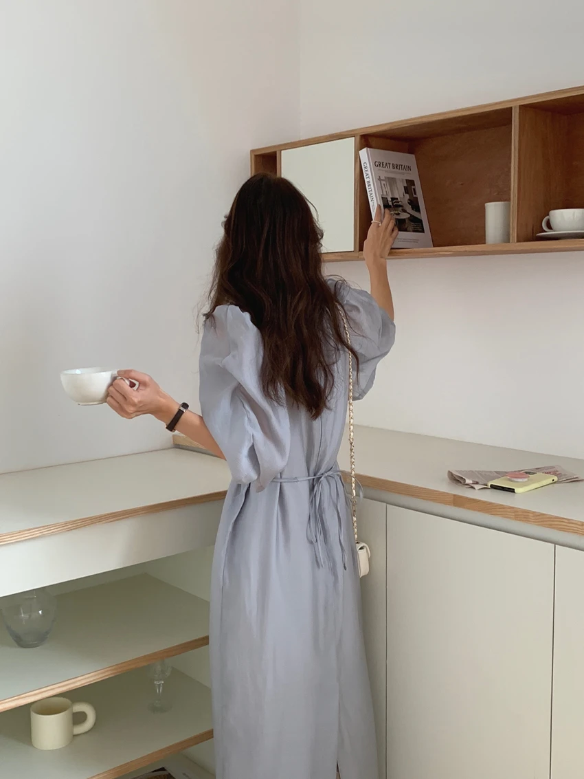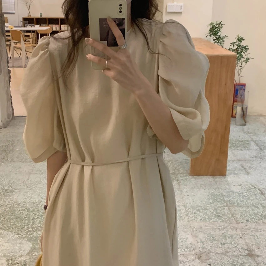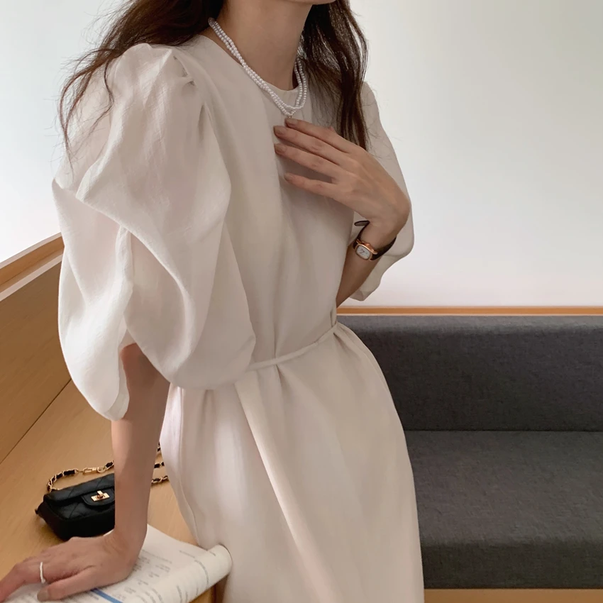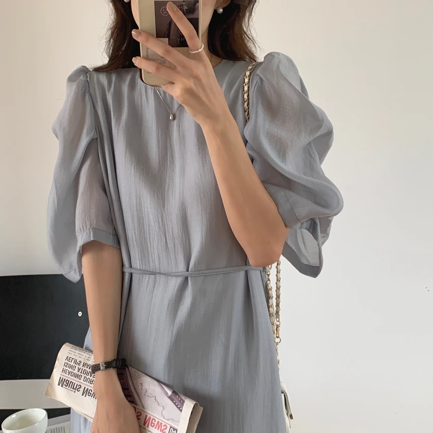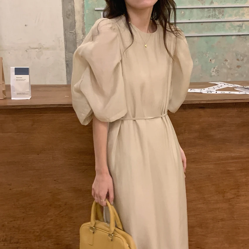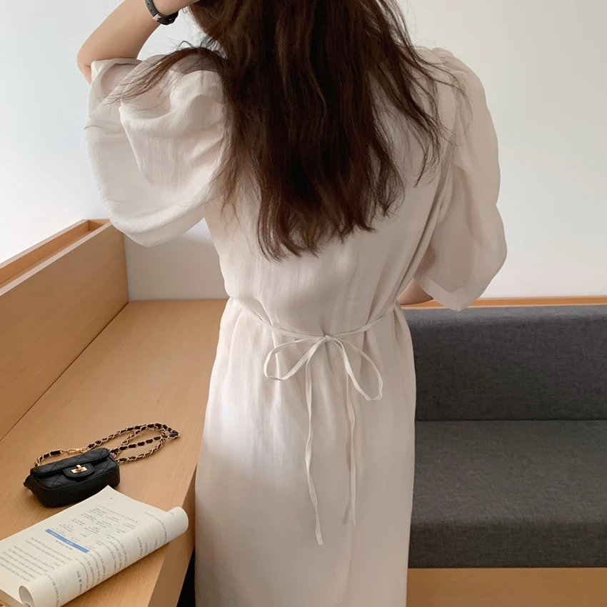 Embrace the chic Korean style with this elegant long dress, perfect for commuting or casual outings.