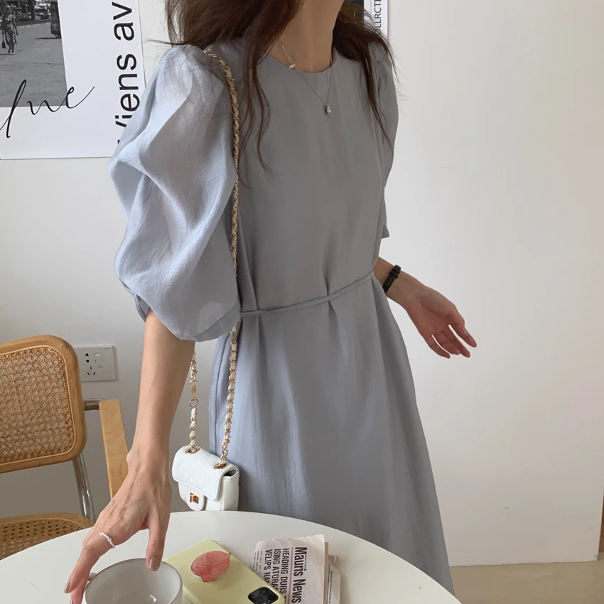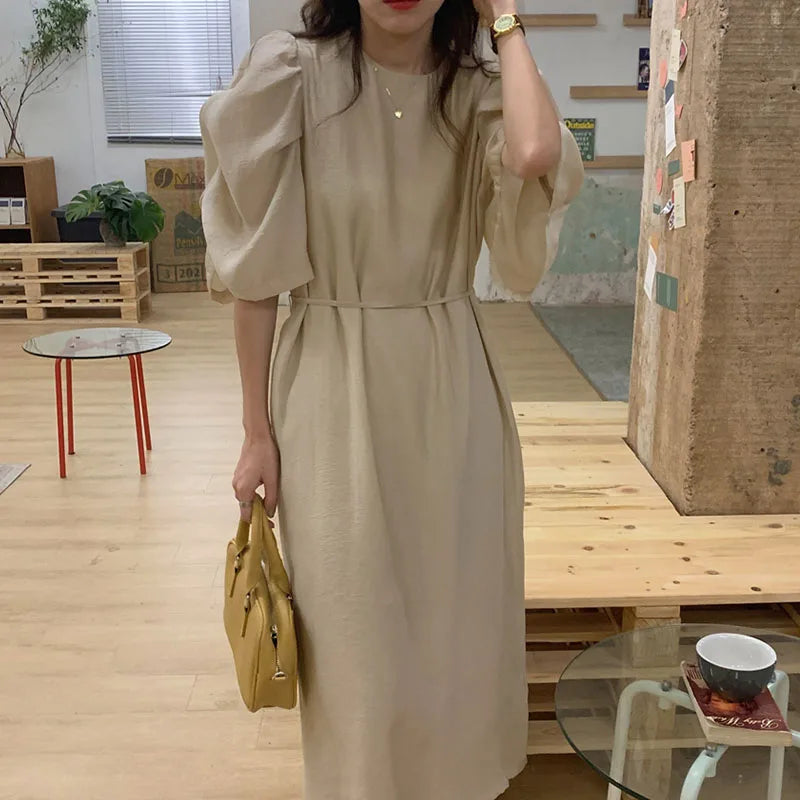 Featuring trendy bubble sleeves, this dress adds a touch of whimsy and charm to your wardrobe.